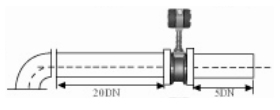 3.彎管的安裝 如果流量計的前端有90°彎頭或T型接頭,要保證流量計的前直管段≥15D,后直管段≥5D |